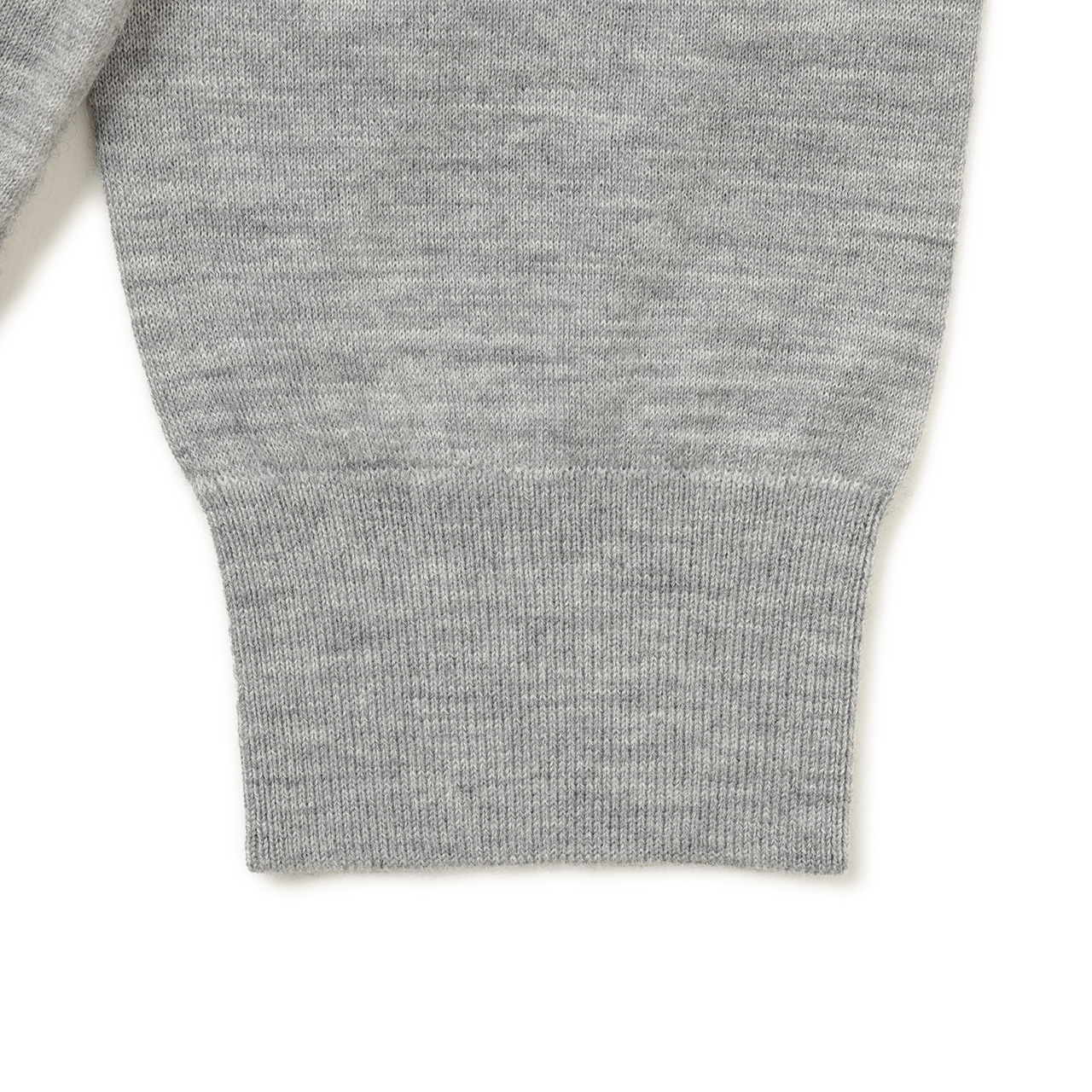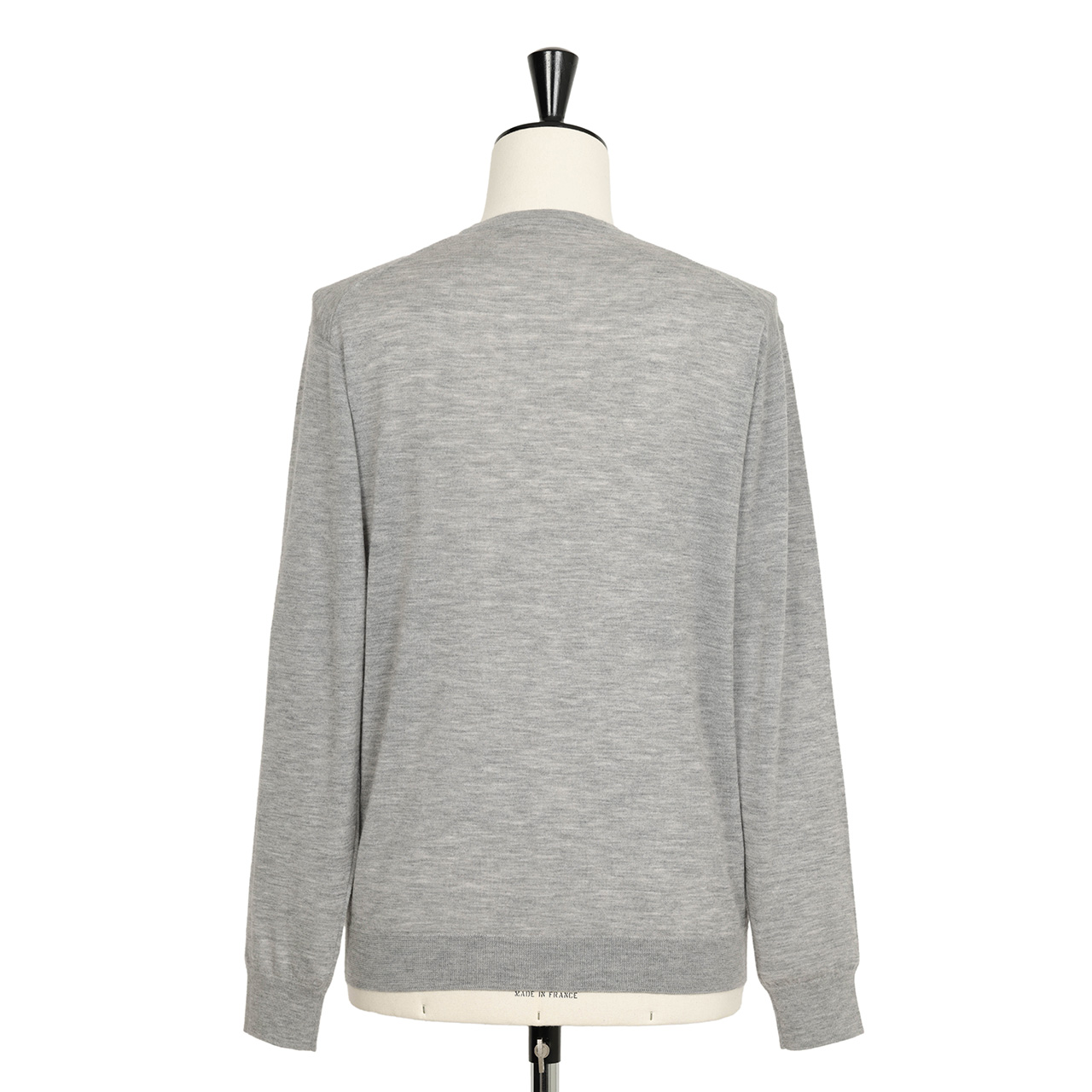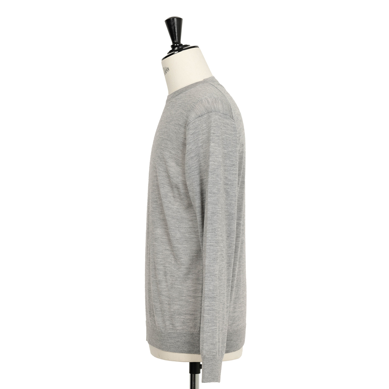 世界最高クラスの繊維長と細さを誇る梳毛糸を用い、極めて繊細で高度な技術で編み立てることにより薄さと強度を兼ね備えた美しいクルーネックニットが生まれました。