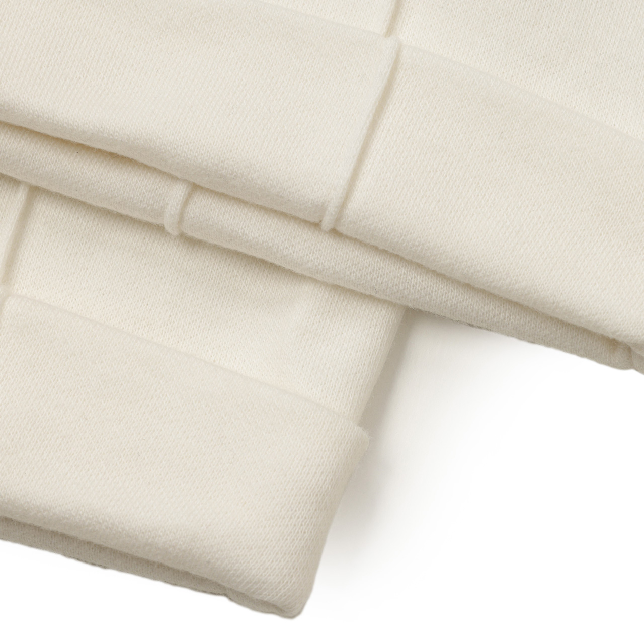 カラーはアイボリーをご用意しました。冬のホワイトは既に多くの方に定着している秋冬の代表的なスタイル。足元はスニーカーを合わせてもいいですし、勿論ブーツを合わせてもOK。ウェアだけでなくシューズもカジュアルから革靴まで幅広く合わせていただけます。