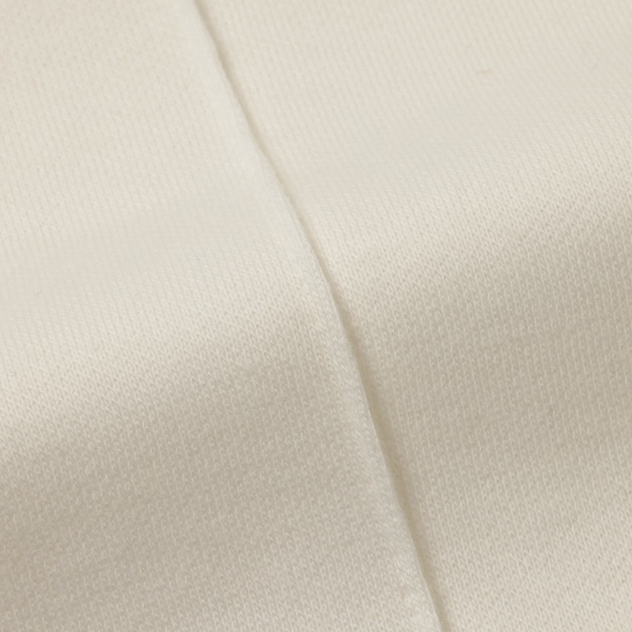 素材はコットンカシミヤをベースにしたジャージ生地を使用。薄手で軽快な生地感に仕上がっており、秋冬のみならず春先まで対応してくれそうな厚み。DORIANIらしい上質素材の非常に滑らかな肌触りも特徴的。