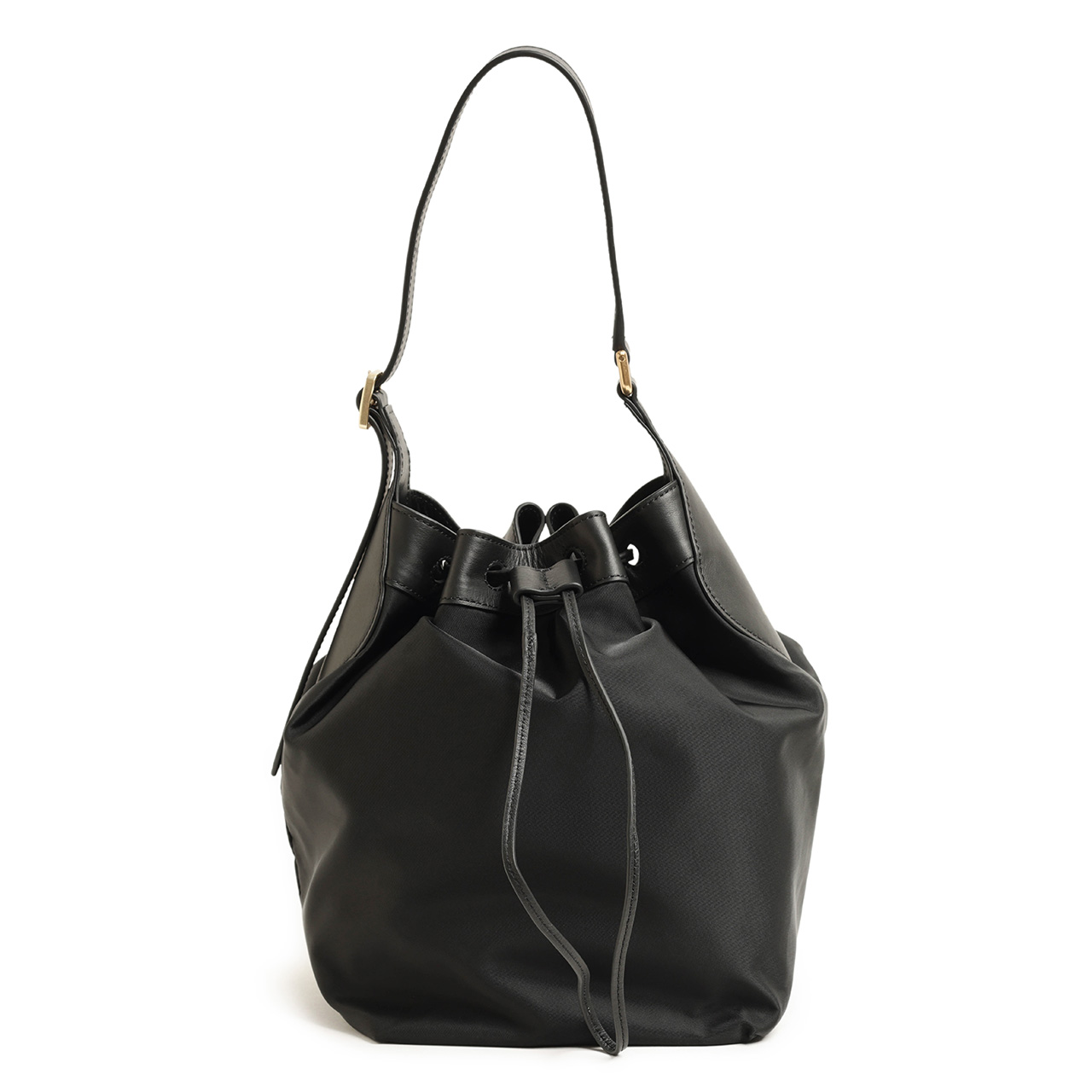 ペレティエ / ナイロン×シボレザー ショルダーバッグ/シルバーパーツ/Seau epaule BUCKET SHOULDER/BLACK